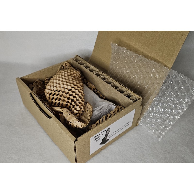Empaquetada individualmente en una caja de cartón con etiqueta.